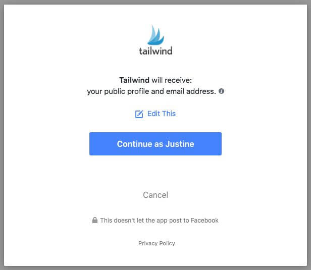 Step 2 – Authorize Tailwind to Access your Facebook Account